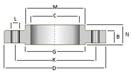 | DN | Furos | B | C | D | G | K | L | M | N |