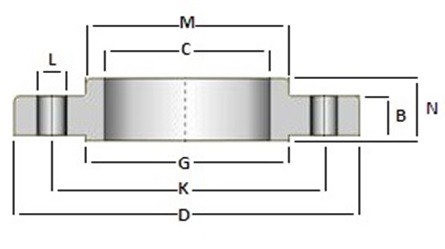 | DN | Furos | B | C | D | G | K | L | M | N |